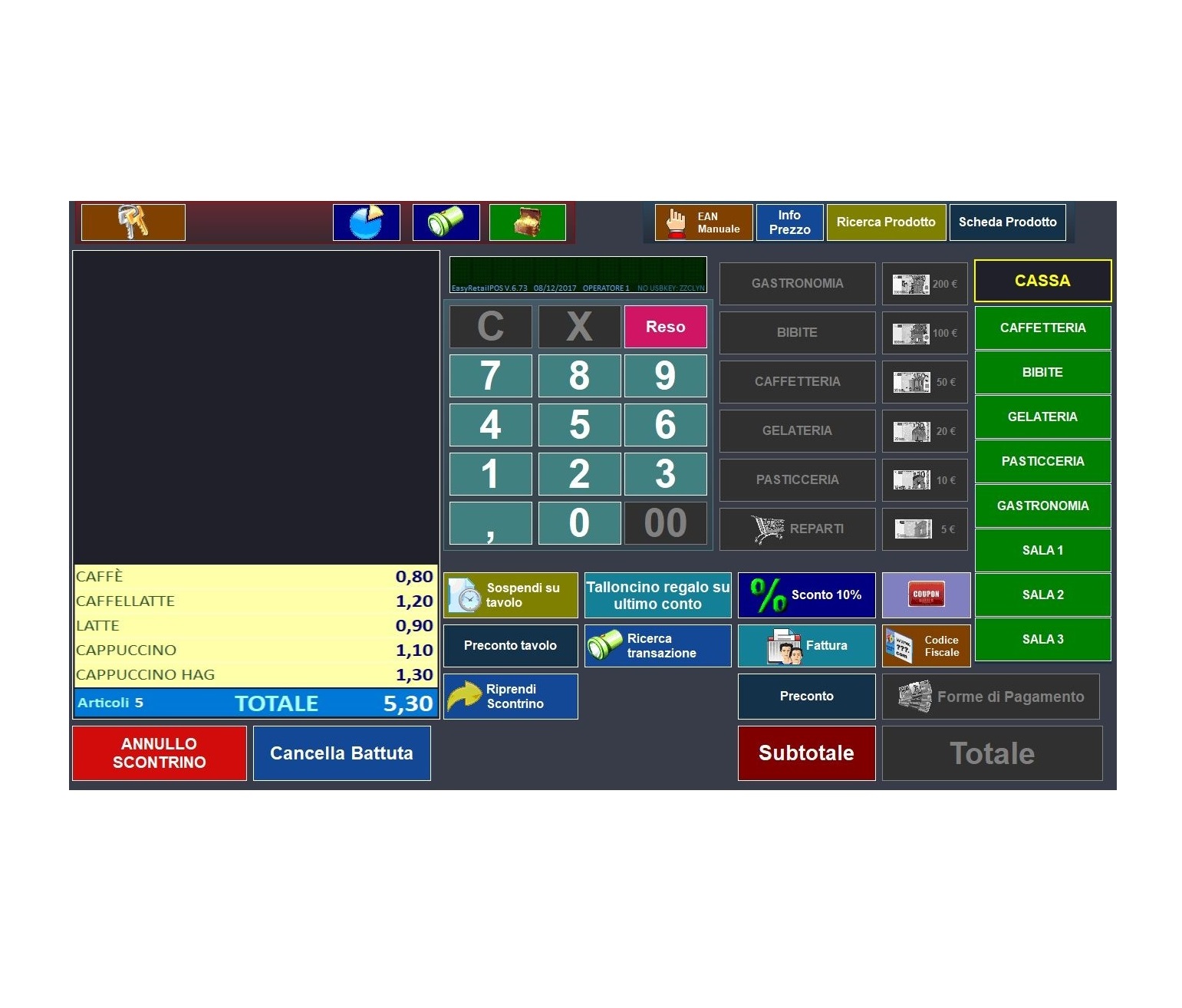 L'interfaccia di vendita touch-screen liberamente personalizzabile in base alle proprie esigenze e configurabile secondo l'attività di vendita. Semplifica l'operatività al punto cassa e dà modo al cassiere di concentrare la propria attenzione sul consumatore. Facile ed intuitivo nell'utilizzo, EasyEvolver velocizza le operazioni in cassa, riduce l'attesa del cliente e minimizza il tempo di addestramento richiesto per raggiungere i massimi livelli di produttività.