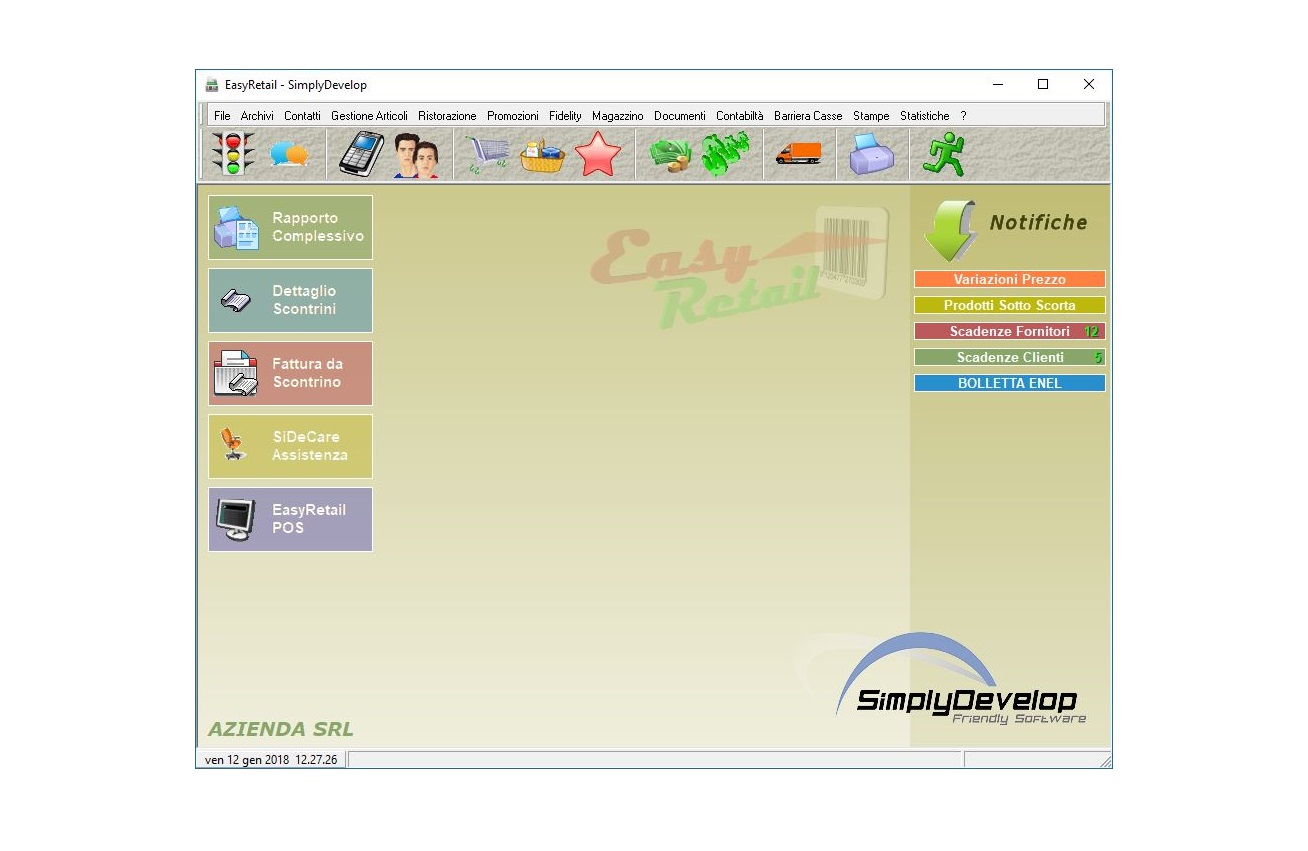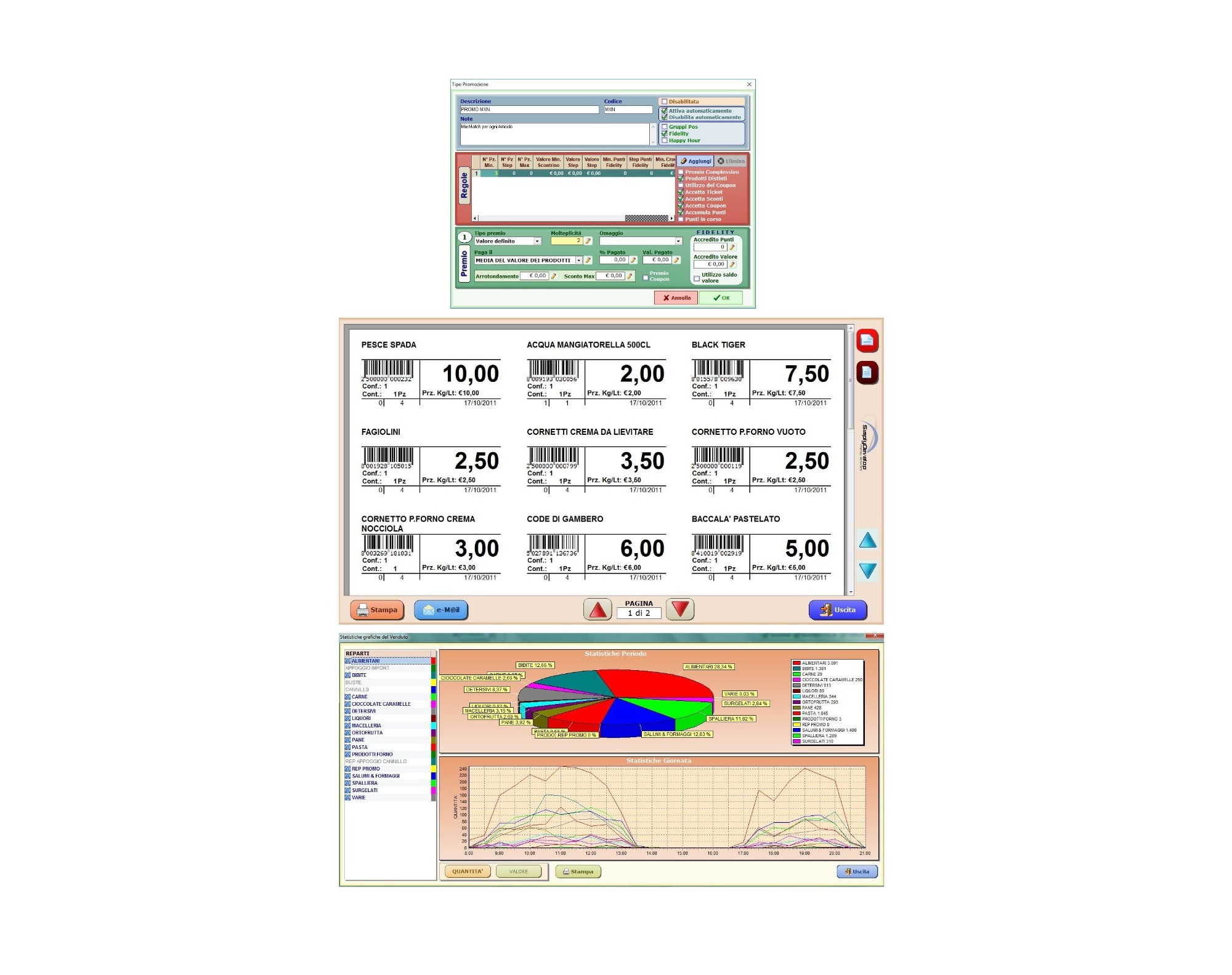 Permette di configurare le anagrafiche (reparti, articoli, fornitori, clienti), di gestire uno o più magazzini (carico/scarico, inventario, sottoscorta, giacenza valorizzata), di stampare frontalini ed etichette, di programmare campagne promozionali e gestire tessere fidelity, di effettuare statistiche sul venduto, di curare la contabilità (DDT, fatturazione, gestione conti, scadenze e pagamenti, bilancio IVA e prima nota).